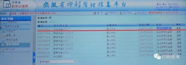 圖為安徽省印刷委托書備案信息平臺