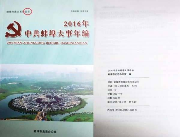 圖為“內資”《2016年中共蚌埠大事件年編》