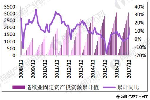 2008-2017年造紙業固定資產投資額累計值統計情況(億元)