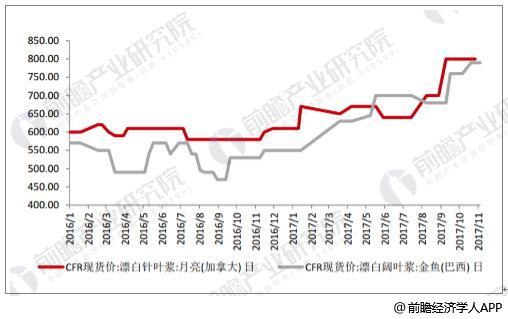 2016-2017年紙漿價格走勢情況(美元/噸)