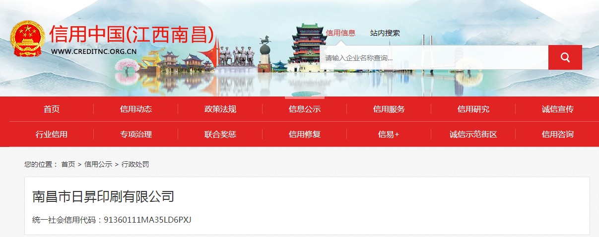 | 行政相對人名稱 | 南昌市日昇印刷有限公司 | 行政相對人類別 | 法人及非法人組織 |