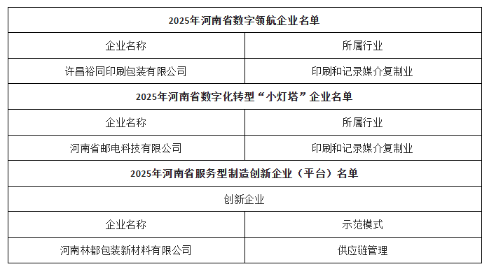 為深入落實《河南省加快數字化轉型推動制造業高端化智能化綠色化發展行動計劃(2023—2025年)》(豫政〔2023〕32號),按照《河南省工業和信息化廳辦公室關于開展2025年制造業數字化轉型領跑者遴選工作的通知》(豫工信辦數字〔2025〕92號)有關要求,經企業自主申報,各省轄市、濟源示范區、航空港區工業和信息化主管部門初審推薦,河南省工業和信息化廳組織專家評審、網上公示等程序,確定2025年河南省數字領航企業、數字化轉型“小燈塔”企業、服務型制造創新企業(平臺)名單。近日予以發布。